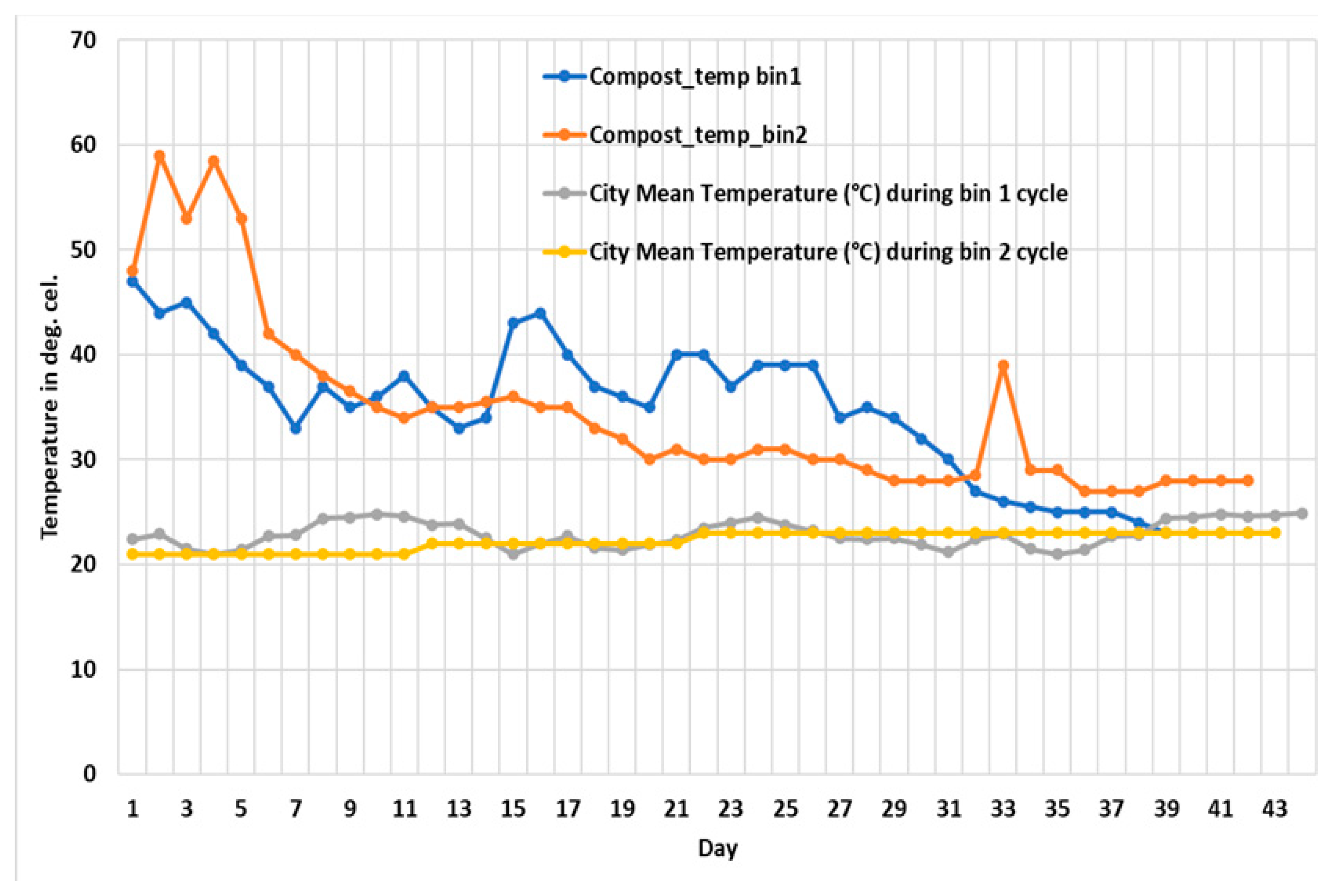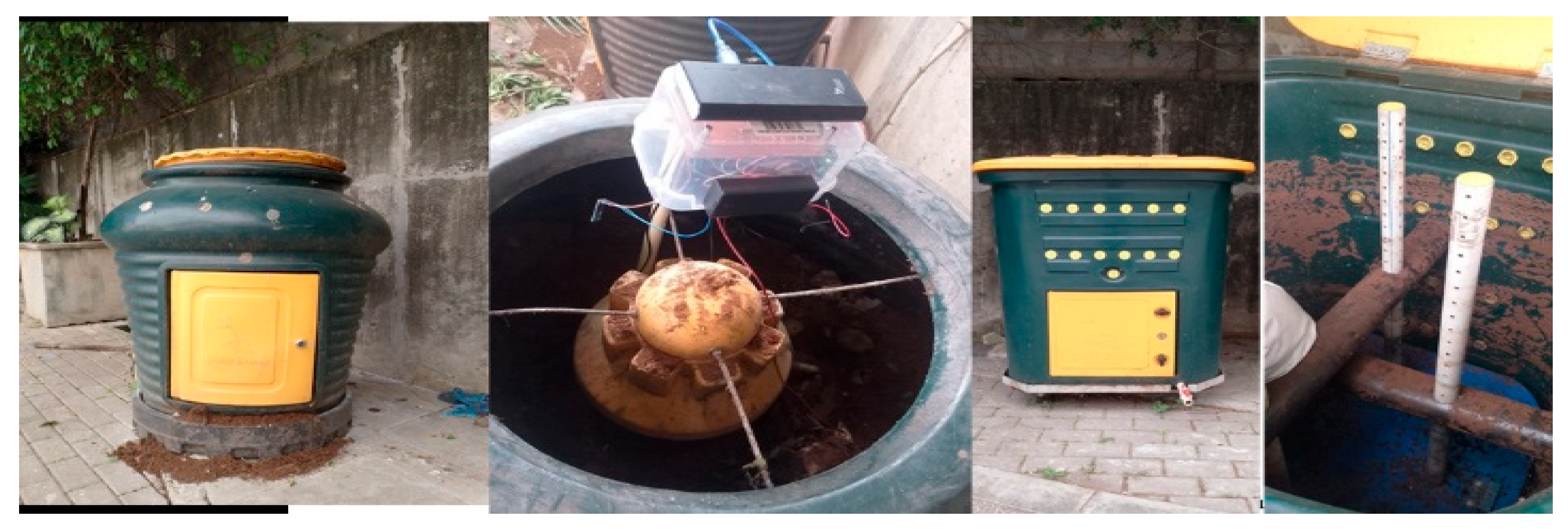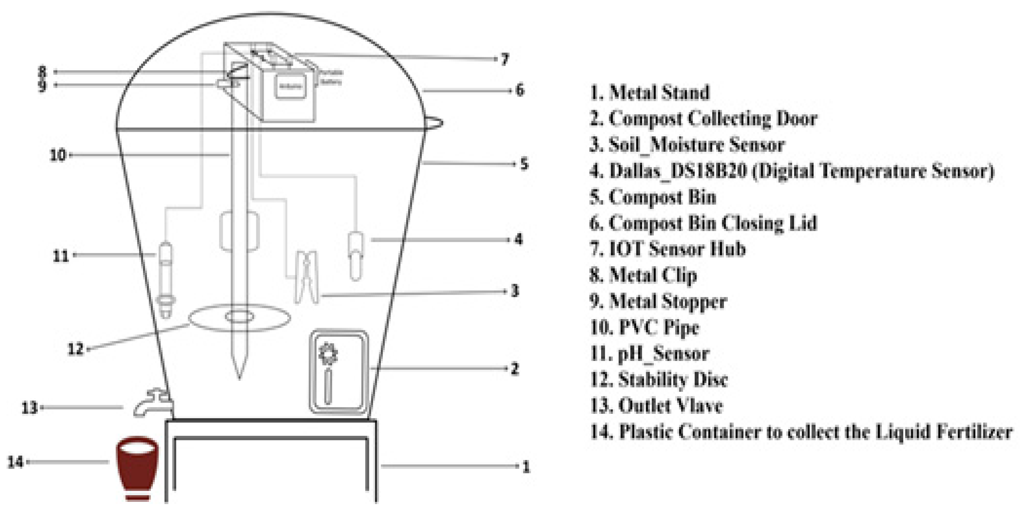 - Bhoir, R.; Thakur, R.; Tambe, P.; Borase, R.; Pawar, S. Design and Implementation of Smart Compost System Using IoT. In Proceedings of the IEEE International Conference for Innovation in Technology (INOCON), Bengaluru, India, 6–8 November 2020; pp. 1–5. [Google Scholar] [CrossRef]