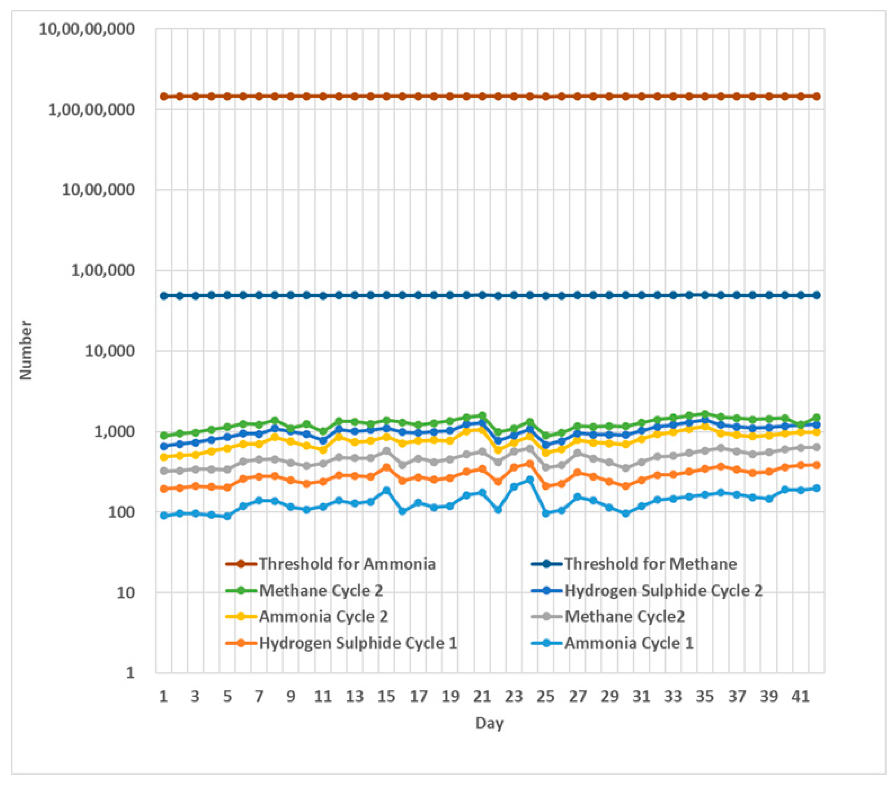 | 3 | Excess hydrogen sulfide | H2S > 100 ppm | Needs aeration | [24] | Foul odor is reduced |