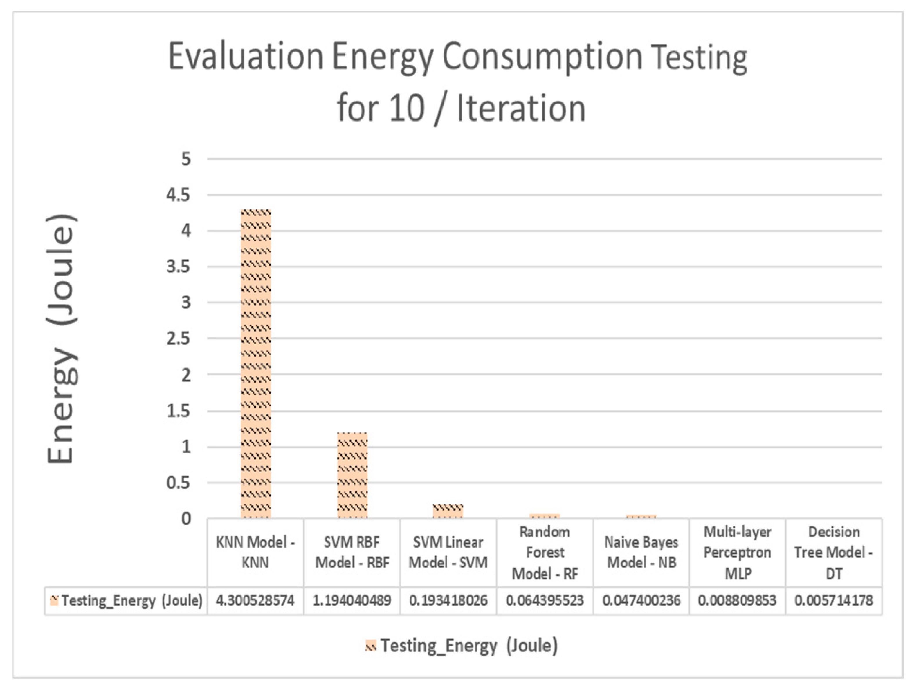 Table 1, tree-based models consistently demonstrate lower energy consumption and inference times compared to Support Vector Machines (SVMs) or K-Nearest Neighbors (KNN) [