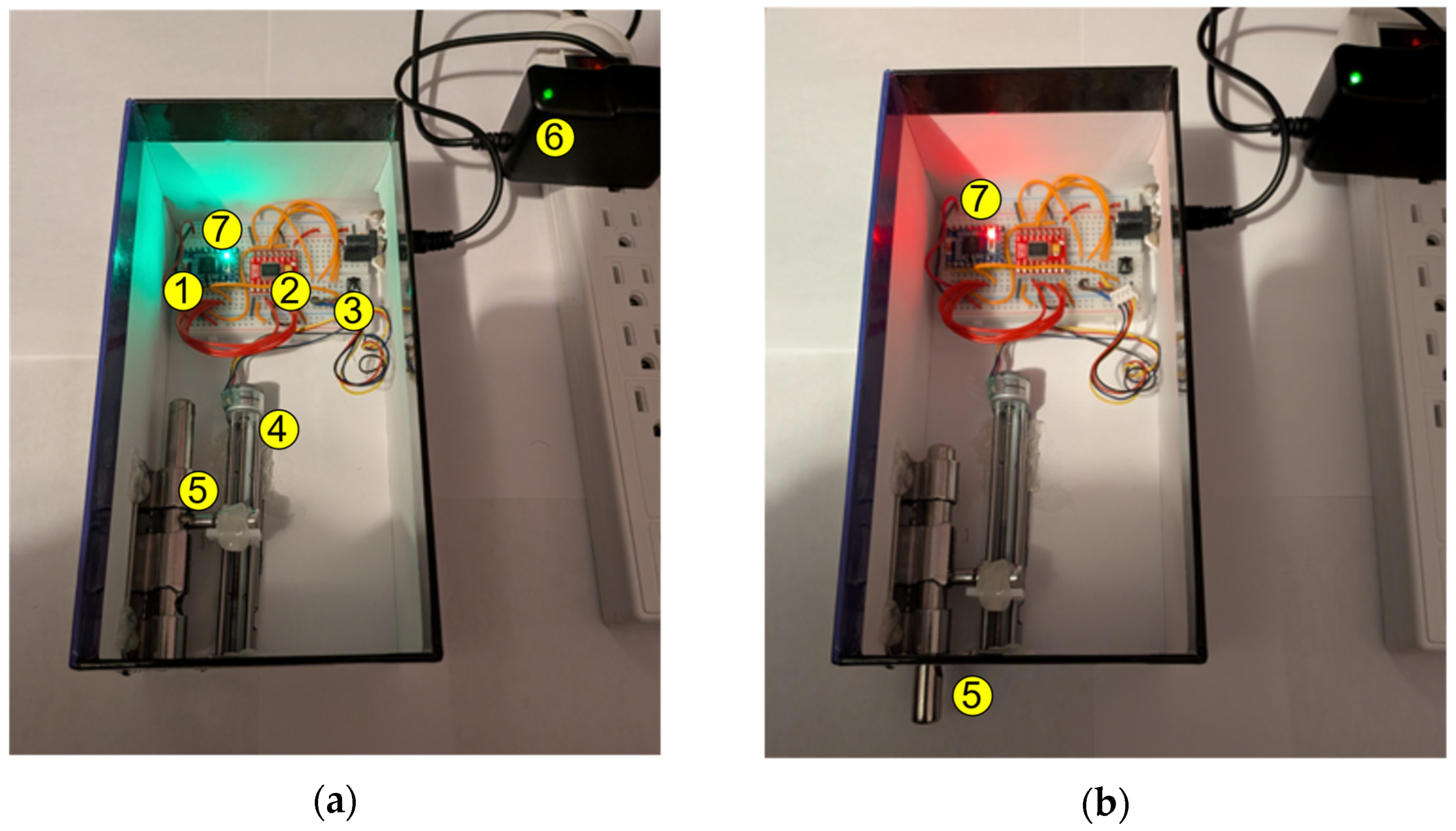 - Chinnasamy, P.; Subramanian, A.; Nithish Selvam, R.; Kabilash, K.N.; Ibrahim, S.N.M.; Swetha, D.Y. GUARDTRACK: RFID and Wi-Fi based Smart Entry System. In 2025 5th International Conference on Trends in Material Science and Inventive Materials (ICTMIM), Kanyakumari, India; IEEE: New York, NY, USA, 2025; pp. 667–672. [Google Scholar]