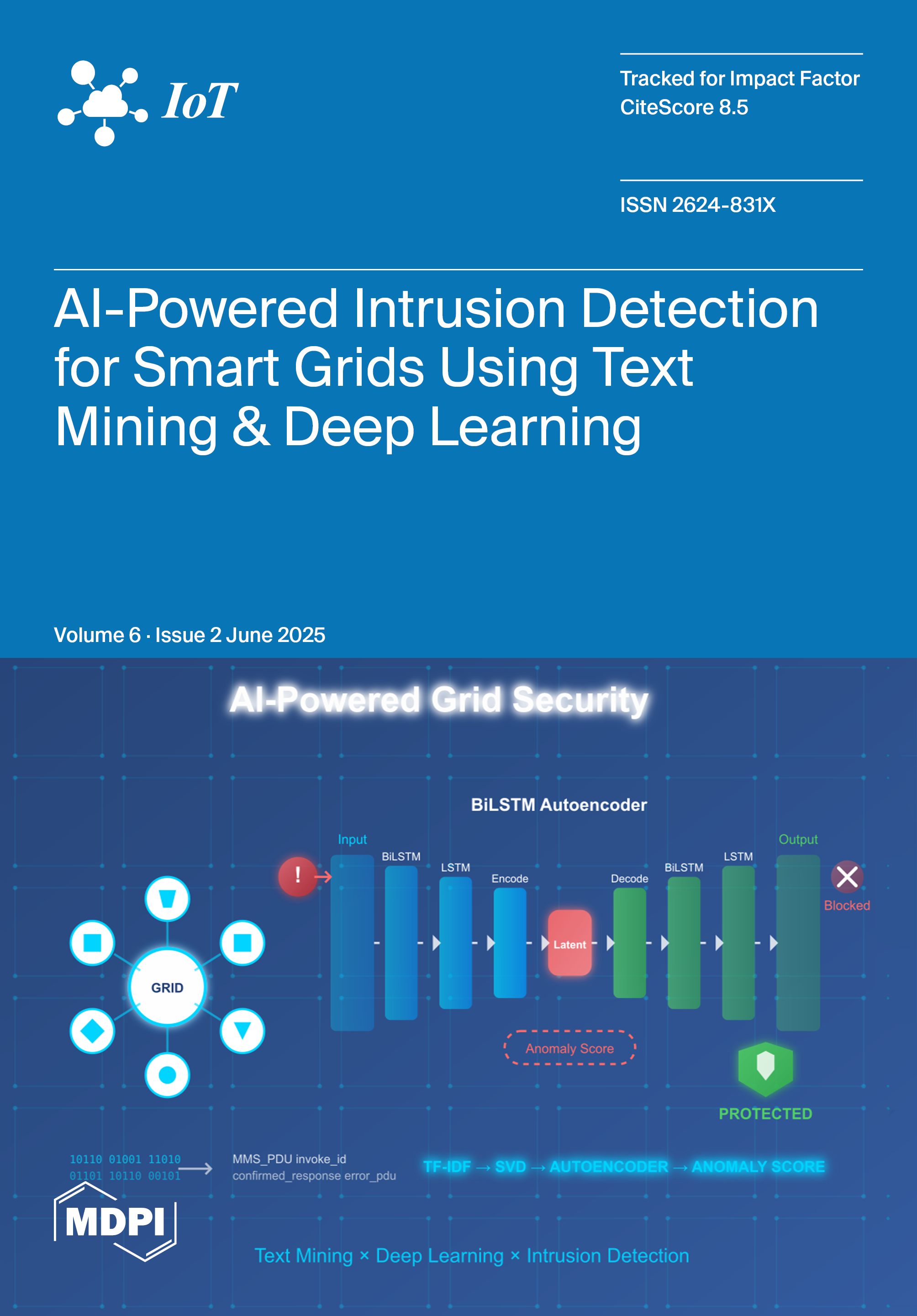 Cover Story: Smart grids are increasingly vulnerable to cyberattacks, with the Manufacturing Message Specification (MMS) protocol being a prime target. This study presents a groundbreaking approach that treats network packets as text documents, applying natural language processing techniques combined with deep learning for intrusion detection. Using a bidirectional LSTM autoencoder with TF-IDF vectorization and SVD, the method learns patterns from normal traffic without requiring labeled attack data. The system achieved a 96.63% attack detection rate on MMS traffic, demonstrating that unsupervised AI can effectively protect critical infrastructure. This novel text mining perspective opens new avenues for cybersecurity in industrial control systems. View this paper