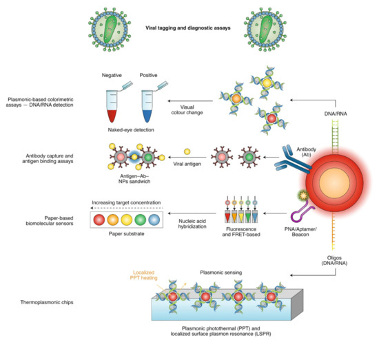 Figure 1. Nanotechnology-based detection approach for COVID-19. Adapted with permission from ref. [75]. Copyright 2020, Springer Nature.