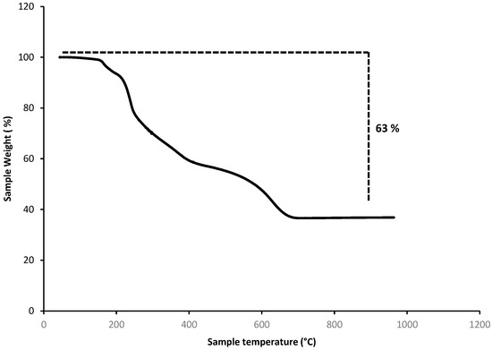 Thermogravimetric analysis of a sample of functionalized AuNP powder.
