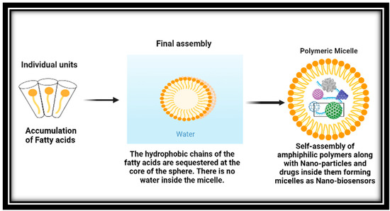 Drug delivery systems have been a main area of focus for pharmaceutical research from the start. In the current technological era of nanocarriers, polymeric micelles (also known more commonly as just PMs), have emerged as multifunctional nanoparticles that have shown promise in several scientific fields [23]. Due to their enhanced retention and permeability which enable them to change the release profile of the integrated pharmacological substances and concentrate them in the target zone, they are much better suited for the poorly soluble medications. PMs are anticipated to be a treatment option which is very successful for cancer therapy in coming times due to their amazing biocompatibility, enhanced permeability, much lower toxicity to healthy cells, and ability to solubilize several types of drugs in their micellar core [22,23,24,25,26]. They can assemble in the tumor microenvironment (TME) thanks to their nano size and the enhanced permeation and retention (EPR) effect. Additionally, PMs are used as “smart drug carriers,” which makes them target particular cancer sites by using several stimuli, enhancing the specificity and effectiveness of targeted drug delivery which is micelle-based [27,28,29].