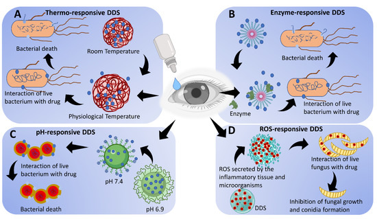 - Nguyen, D.D.; Lai, J.-Y. Advancing the stimuli response of polymer-based drug delivery systems for ocular disease treatment. Polym. Chem. 2020, 11, 6988–7008. [Google Scholar] [CrossRef]