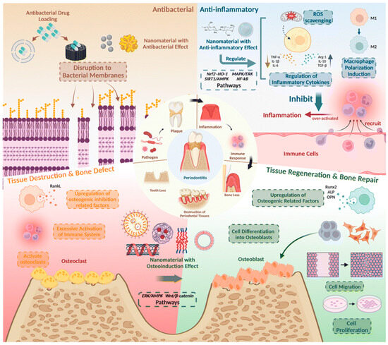 - Wu, H.; Li, Y.; Shi, L.; Liu, Y.; Shen, J. New Advances in Periodontal Functional Materials Based on Antibacterial, Anti-Inflammatory, and Tissue Regeneration Strategies. Adv. Healthc. Mater. 2025, 14, 2403206. [Google Scholar] [CrossRef] [PubMed]