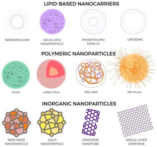 Lipid-based nanomaterials have emerged as promising platforms for theranostic interventions in periodontitis, attributed to their excellent biocompatibility, structural versatility, and capacity to encapsulate both hydrophilic and hydrophobic therapeutic agents. These systems facilitate enhanced drug delivery within the complex periodontal microenvironment and can be tailored for diagnostic imaging or stimuli-responsive release. Among the most extensively studied lipid-based systems, solid lipid nanoparticles (SLNs), nanostructured lipid carriers (NLCs), and liposomes have demonstrated considerable potential in delivering antimicrobial agents, anti-inflammatory compounds, and regenerative bioactives [61]. Solid lipid nanoparticles, composed entirely of solid lipids, offer high drug stability, controlled release, and protection of labile compounds, although they may suffer from limited drug loading and potential expulsion during storage, particularly of hydrophilic drugs [62,89]. Nanostructured lipid carriers, composed of a mixture of both solid and liquid lipids, exhibit enhanced drug-loading efficiency, physicochemical stability, and reduced drug expulsion compared to SLNs [90,91,92]. Liposomes, composed of phospholipid bilayers enclosing aqueous cores, are particularly suited for the encapsulation of hydrophilic molecules and can be engineered for triggered drug release in response to local pH changes, enzymatic activity, or ROS accumulation characteristic microenvironment features of inflamed periodontal pockets [61,62].