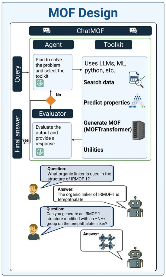 - Kang, Y.; Kim, J. ChatMOF: An Artificial Intelligence System for Predicting and Generating Metal-Organic Frameworks Using Large Language Models. Nat. Commun. 2024, 15, 4705. [Google Scholar] [CrossRef] [PubMed]