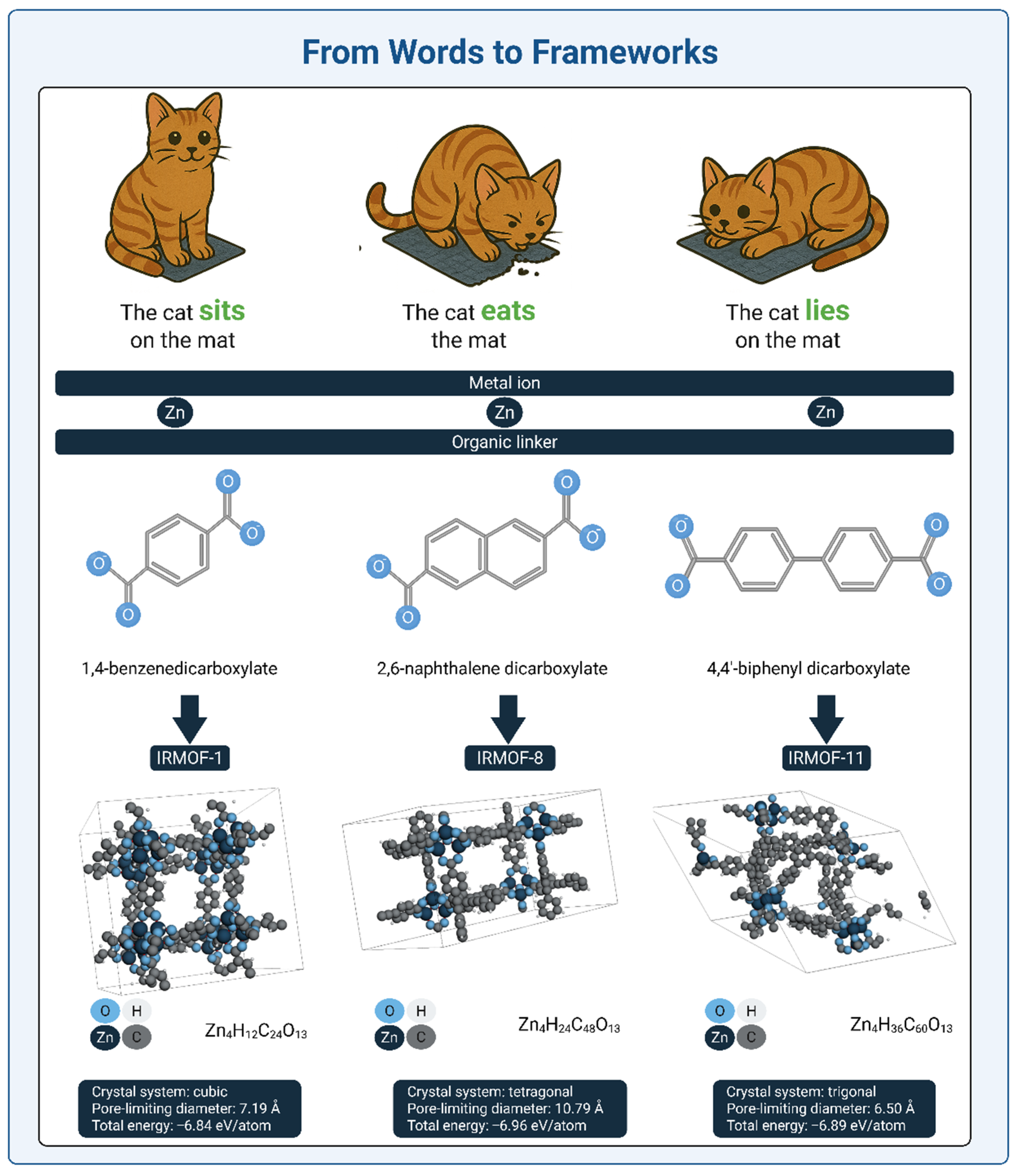 - Badrinarayanan, S.; Magar, R.; Antony, A.; Meda, R.S.; Barati Farimani, A. MOFGPT: Generative Design of Metal–Organic Frameworks Using Language Models. J. Chem. Inf. Model. 2025, 65, 9049–9060. [Google Scholar] [CrossRef]