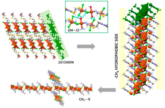 - Xue, K.; Chai, W.X.; Wu, Y.W.; Ling, C.; Song, L. Syntheses, Structures and Properties of Two Coordination Polymers Built Upon Copper(I, II) Halide Clusters and a New Thiodiazole Ligand. J. Clust. Sci. 2014, 25, 1005–1017. [Google Scholar] [CrossRef]