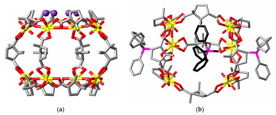 - Inokuma, Y.; Kawano, M.; Fujita, M. Crystalline Molecular Flasks. Nat. Chem. 2011, 3, 349–358. [Google Scholar] [CrossRef] [PubMed]