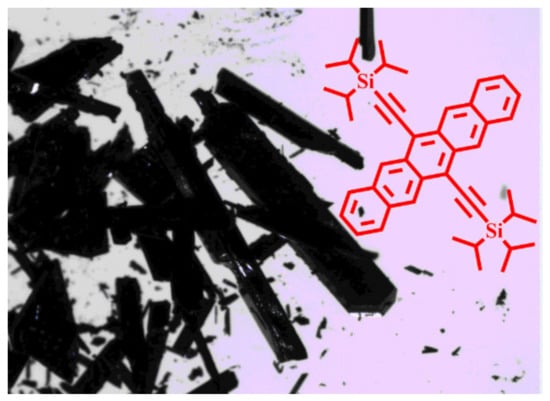 - Anthony, J.E.; Brooks, J.S.; Eaton, D.L.; Parkin, S.R. Functionalized pentacene: Improved electronic properties from control of solid-state order. J. Am. Chem. Soc. 2001, 123, 9482–9483. [Google Scholar] [CrossRef]