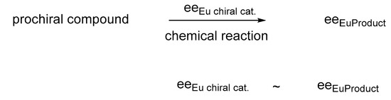 Klussmann et al. demonstrated that in the case of an aldol reaction there is a relationship between the eutectic composition of the amino acid used as a catalyst and the composition of the product [11]. For example, in the presence of proline (~50% eutectic composition), the aldol reaction results in 50% enantiomeric purity, the same result was obtained also in the presence of less than 50% pure, or even purer proline enantiomeric mixtures. Thus, the eeEu composition of the chiral catalyst can determine the enantiomeric purity of the product (Figure 4).
