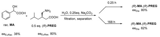 In the followings, two resolutions confirming the memory of the resolving agent are presented. In the first one, the resolving agent determines the kinetic control (Figure 12) [25].