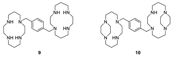 Antiviral macrocyclic bicyclams AMD3100 9; constrained analogue of AMD3100 10 [77].