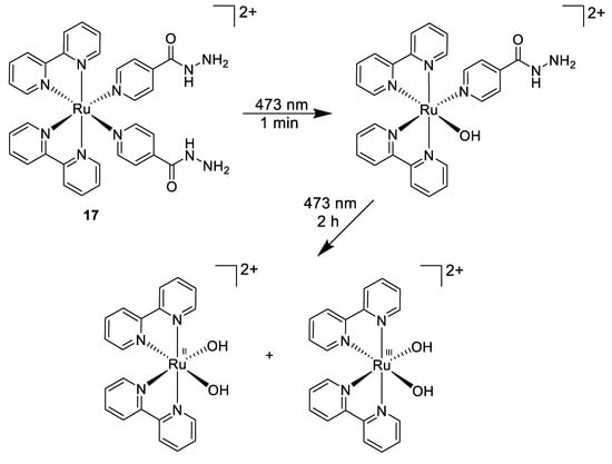 Stepwise photoactivation of the antibacterial prodrug cis-[Ru(bpy)2(INH)2]2+ 17 [97].