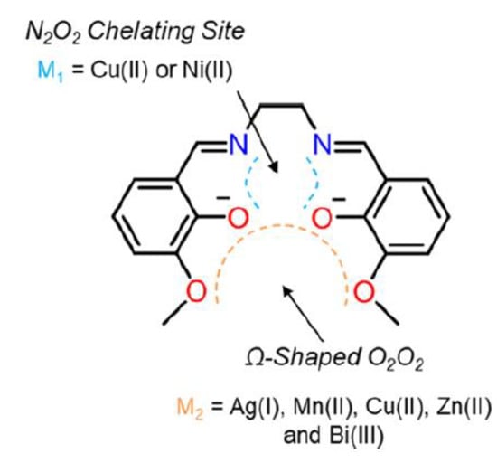 - Finelli, A.; Abram, S.-L.; Hérault, N.; Crochet, A.; Fromm, K.M. Bimetallic Salen-based compounds and tgeir potential applications. Cryt. Growth Des. 2020, 20, 4945–4958. [Google Scholar] [CrossRef]