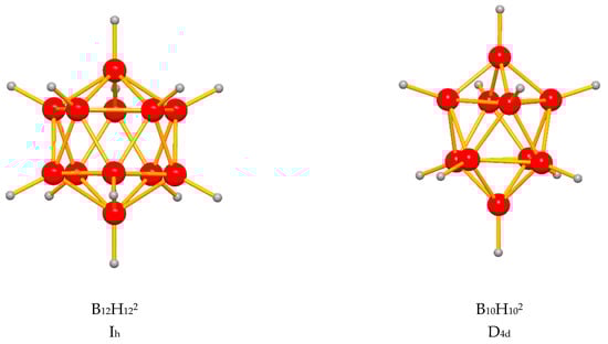 - Wunderlich, J.A.; Lipscomb, W.N. Structure of B12H12−2 ion. J. Am. Chem. Soc. 1960, 82, 4427–4428. [Google Scholar] [CrossRef]