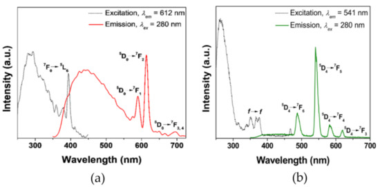 - Binnemans, K. Interpretation of europium(III) spectra. Coord. Chem. Rev. 2015, 295, 1–45. [Google Scholar] [CrossRef]