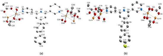 | [Cu2(μ-OAc)4(2)]n | 21.1 | 39.8 | 38.5 |
