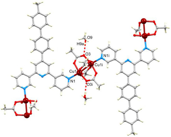 | [Cu2(μ-OAc)4(3)]n | 1.9760(18), 1.9894(18), 1.9759(18), 1.9789(18), 1.979(3), 1.970(2), 1.966(3), 1.971(3) | 2.167(2), 2.151(2) | 2.6292(8), 2.6319(7) |
