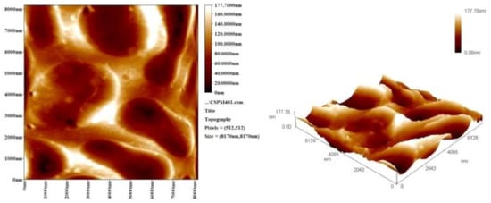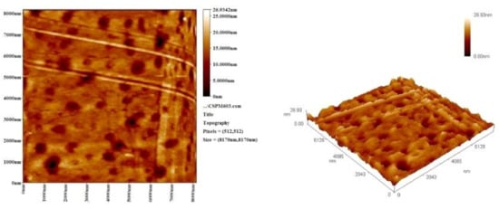 Atomic force microscopy (AFM) images of PVC (blank) film after 120 min of thermal degradation at 180 °C.