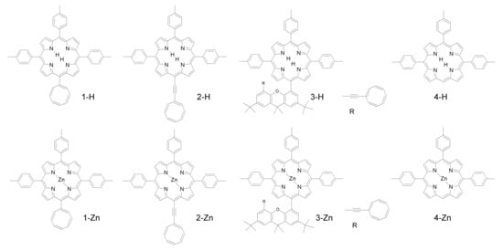 - Ostapko, J.; Gorski, A.; Buczyńska, J.; Golec, B.; Nawara, K.; Kharchenko, A.; Listkowski, A.; Ceborska, M.; Pietrzak, M.; Waluk, J. Towards More Photostable, Brighter, and Less Phototoxic Chromophores: Synthesis and Properties of Porphyrins Functionalized with Cyclooctatetraene. Chem. Eur. J. 2020, 70, 16666–16675. [Google Scholar] [CrossRef] [PubMed]