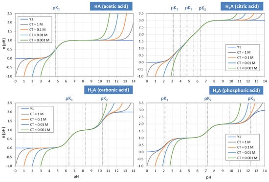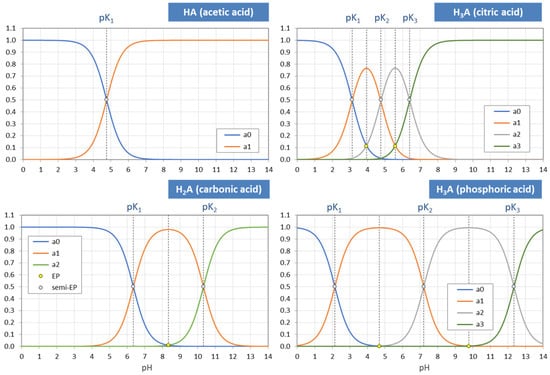 - Khan, A. A simple method for analysis of titration curves of polyprotic acids. Nucleus 2015, 51, 448–454. [Google Scholar]