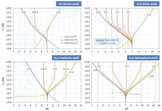 - Asuero, A.G.; Michałowski, T. Comprehensive Formulation of Titration Curves for Complex Acid-Base Systems and Its Analytical Implications. Crit. Rev. Anal. Chem. 2011, 41, 151–187. [Google Scholar] [CrossRef]