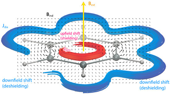 - Sundholm, D.; Fliegl, H.; Berger, R.J.F. Calculations of magnetically induced current densities: Theory and applications. WIREs Comput. Mol. Sci. 2016, 6, 639–678. [Google Scholar] [CrossRef]