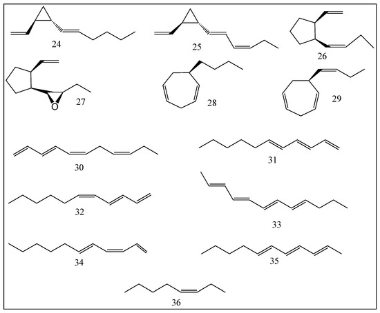 - Ohloff, G.; Pickenhagen, W. Synthese von (±)-dictyopterene. A HeIv. Chim. Acta. 1969, 52, 880–886. [Google Scholar] [CrossRef]