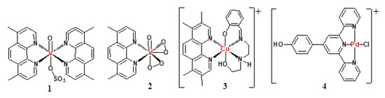 - Pages, B.J.; Ang, D.L.; Wright, E.P.; Aldrich-Wright, J.R. Metal complex interactions with DNA. Dalton Trans. 2015, 44, 3505–3526. [Google Scholar] [CrossRef]