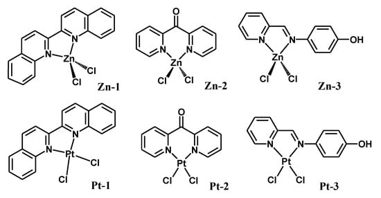 - Muranishi, Y.; Wang, Y.; Odoko, M.; Okabe, N. (2,2’-Biquinoline-κ2N,N′)dichloropalladium(II), -copper(II) and -zinc(II). Acta Crystallograph. C: Cryst. Struct. Commun. 2005, C61, 307–310. [Google Scholar] [CrossRef]