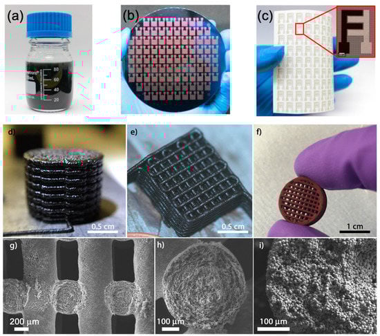 - Jakus, A.E.; Secor, E.B.; Rutz, A.L.; Jordan, S.W.; Hersam, M.C.; Shah, R.N. Three-Dimensional Printing of High-Content Graphene Scaffolds for Electronic and Biomedical Applications. ACS Nano 2015, 9, 4636–4648. [Google Scholar] [CrossRef]