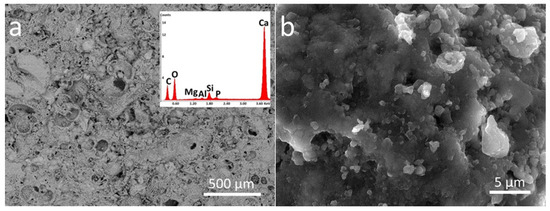 Scanning electron microscopy (SEM) images (backscattered electron) and energy-dispersive X-ray spectra (EDS) were collected by using a Tescan FE-SEM, MIRA XMU series (TESCAN, Brno, Czech Republic), equipped with a Schottky field emission source, and with a Bruker Quantax 200 energy-dispersive X-ray spectrometer (Bruker, Billerica, MA, USA), operating in both low and high vacuum, and located at the Arvedi Laboratory, CISRiC, University of Pavia, Pavia, Italy.