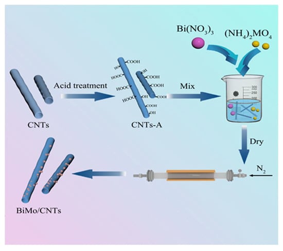 Schematic diagram of the synthesis of BiMo/CNTs.