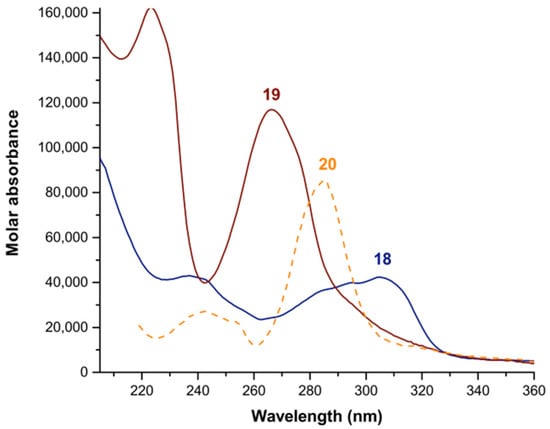 Calculated electronic spectra of the tris complexes of Fe3+ with bipy and phen in methanol: (18) [Fe(bipy)3]3+; (19) [Fe(phen)3]3+; (20) [Ru(bipy)3]2+ [45].