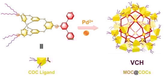 The construction of the VCH with 24 COCs attached to one MOC through coordination between anisotropic COC ligand bearing one bipyridine moiety and Pd(II) ions.