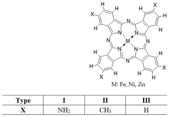 The general structure of the investigated metal-phthalocyanines is depicted in the Figure 1.