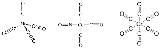 Molecular complexes, Ni(CO)4, Co(CO)3NO and Cr(CO)6.