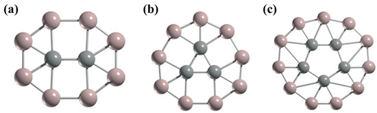 - Zhai, H.J.; Alexandrova, A.N.; Birch, K.A.; Boldyrev, A.I.; Wang, L.S. Hepta- and Octacoordinate Boron in Molecular Wheels of Eight- and Nine-Atom Boron Clusters: Observation and Confirmation. Angew. Chem. Int. Ed. 2003, 42, 6004–6008. [Google Scholar] [CrossRef] [PubMed]