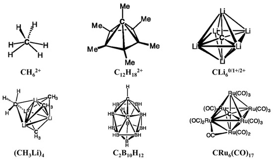 - Exner, K.; Schleyer, P.v.R. Planar Hexacoordinate Carbon: A Viable Possibility. Science 2000, 290, 1937–1940. [Google Scholar] [CrossRef]