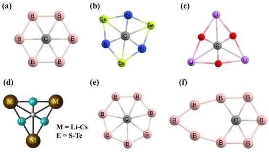 In 2021, Leyva-Parra et al. designed and explored the PES of MmCE2p (E=S−Te, M=Li−Cs, m=2, 3 and p=m − 2) and MnCE3q (E=S−Te, M=Li−Cs, n=1, 2 and q=n − 2) systems (Figure 14) [95]. They found that among 38 global minima, 24 are ptCs and 14 are ppCs species. All of the ptCs and ppCs that have been recognized as potential global minima with C2v (M2CE3, MCE3−, and M3CE2+) or Cs (M2CE2) geometries have C–E bond lengths between single and double bonds. In all of these systems, covalent connections between carbon and chalcogens and favorable electrostatic attractions between carbon and alkali metals are confirmed by chemical bonding analyses. Thus, all of these systems satisfy the geometric and electronic requirements for classification as systems with planar hypercoordinate carbon atoms. Furthermore, the detected systems are dynamically stable, suggesting that their experimental validation at room temperature is feasible.
