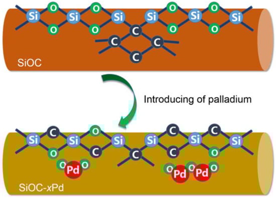 Schematic drawing of chemical composition on the surface of SiOC and SiOCxPd (Reprinted with permission from Ref. [72]. 2017 Elsevier).
