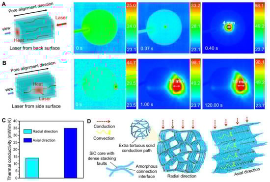 Thermal superinsulation performance of the AH-SSCSNWA. Thermal conducting behavior of the AH-SSCSNWA in the (A) axial and (B) radial directions, respectively, showing the anisotropic heat transfer behavior in different directions. (C) The thermal conductivities of the AH-SSCSNWA in axial and radial directions. (D) A schematic illustration showing the mechanism to achieve thermal superinsulation. (Reprinted with permission from Ref. [82]).