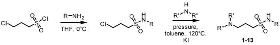 - Erman, W.F.; Kretschmar, H.C. Syntheses and Facile Cleavage of Five-Membered Ring Sultams. J. Org. Chem. 1961, 26, 4841–4850. [Google Scholar] [CrossRef]