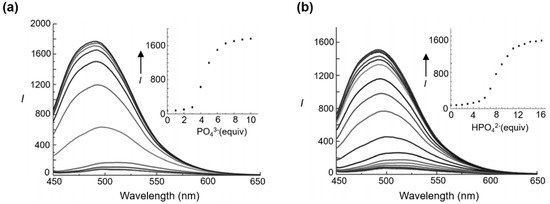 - Zhang, D.; Zhao, J.; Cao, L.; Yang, D.; Chen, B.; Yu, L.; Yang, X.-J.; Wu, B. Stepwise enhancement of fluorescence induced by anion coordination and non-covalent interactions. Dalton Trans. 2021, 50, 76–80. [Google Scholar] [CrossRef] [PubMed]