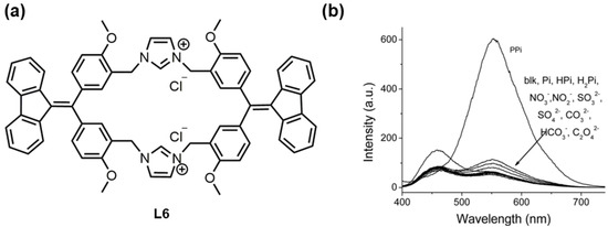 - Xiong, J.-B.; Ban, D.-D.; Zhou, Y.-J.; Li, J.-Z.; Chen, S.-R.; Liu, G.-Q.; Tian, J.-J.; Mi, L.-W.; Li, D.-M. A novel AIE-active imidazolium macrocyclic ratiometric fluorescence sensor for pyrophosphate anion. RSC Adv. 2022, 12, 6876–6880. [Google Scholar] [CrossRef]