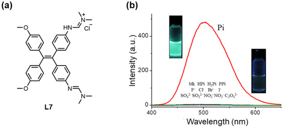 - Yuan, Y.-X.; Wang, J.-H.; Zheng, Y.-S. Selective Fluorescence Turn-On Sensing of Phosphate Anion in Water by Tetraphenylethylene Dimethylformamidine. Chem. Asian J. 2019, 14, 760–764. [Google Scholar] [CrossRef] [PubMed]