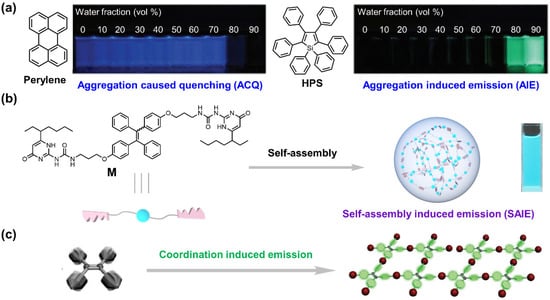- Hong, Y.; Lam, J.W.Y.; Tang, B.Z. Aggregation-induced emission. Chem. Soc. Rev. 2011, 40, 5361–5388. [Google Scholar] [CrossRef]